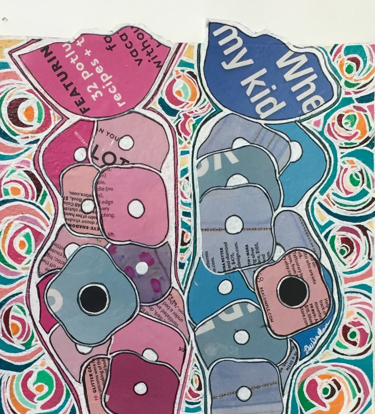 With all the issues surrounding gender I decided to use pink and blue for the poppy moms. Everyone seems concerned about transgenders and the restroom policies. I have many transgender student that I teach in my high school. I feel that this young people are not a threat to the general public restrooms. That doesn't mean that there aren't individuals who are. My picture shows pregnant mom poppies one with a blue body to represent the male sex and a pregnant mom poppy that's pink to represent the female sex. I switched the color of the babies to the opposite color of the sex. I wanted this piece to show the loving nature of a mom even when the mom finds out their child is transgender. Having said that I know this isn't always the case. In my art world in a perfect scenario people would be accepting and loving of every individual.